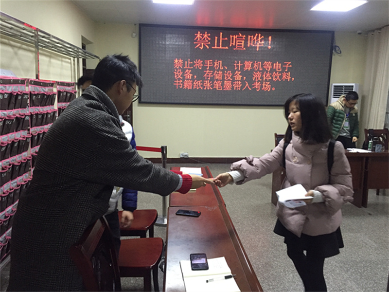 直属考点考场严格按网考办规定进行布置。所有考室均安装网络摄像头,由网考办实施实时监控,并安排有专人值守考场入口、安检室查证及手机收发、楼道巡视等,有效维护了考场秩序与安全,保证了本次统考的顺利进行。