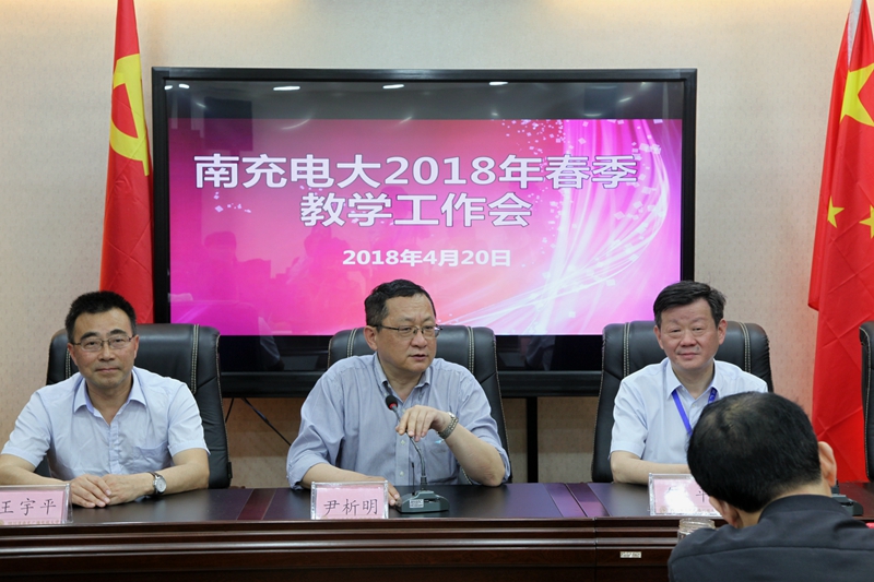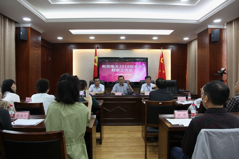 南充电大2018年春季教学工作会于4月19日上午在我校403会议室召开,南充电大及县级电大分校共47位教师参加了会议,会议由教务处处长游华奎主持,校党委书记、校长昝平、分管副校长王宇平参加了本次会议,四川电大党委副书记、校长尹析明也莅临会议现场并讲话。