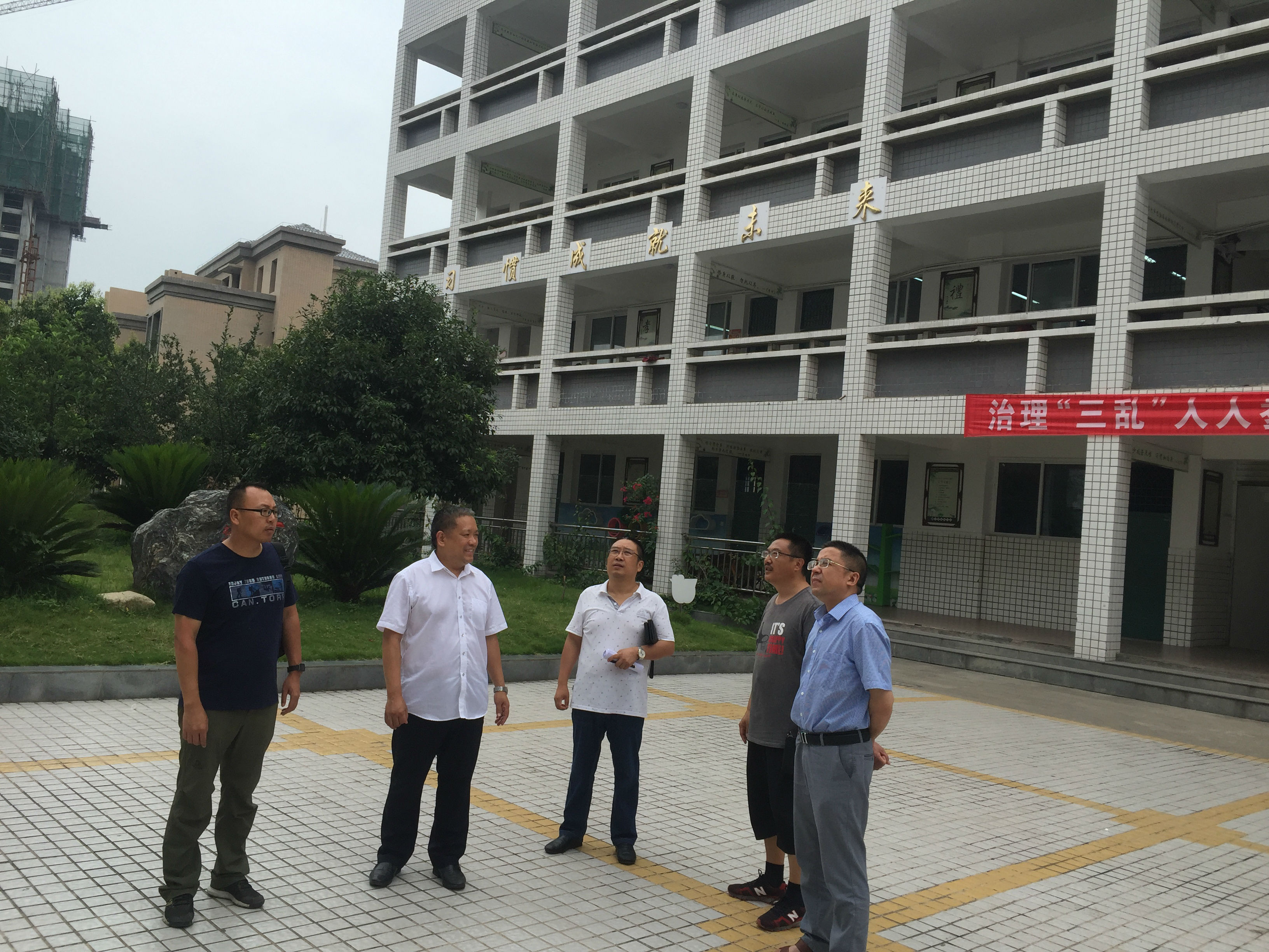 在此前提下,教务处一行先到新考试场地-西充实验一小进行了现场查看与调研。游华奎处长就考场大小、考室情况、结构分布及考场布置等与分校校长冯泽、考试业务负责人何祥文等做了相关交流。