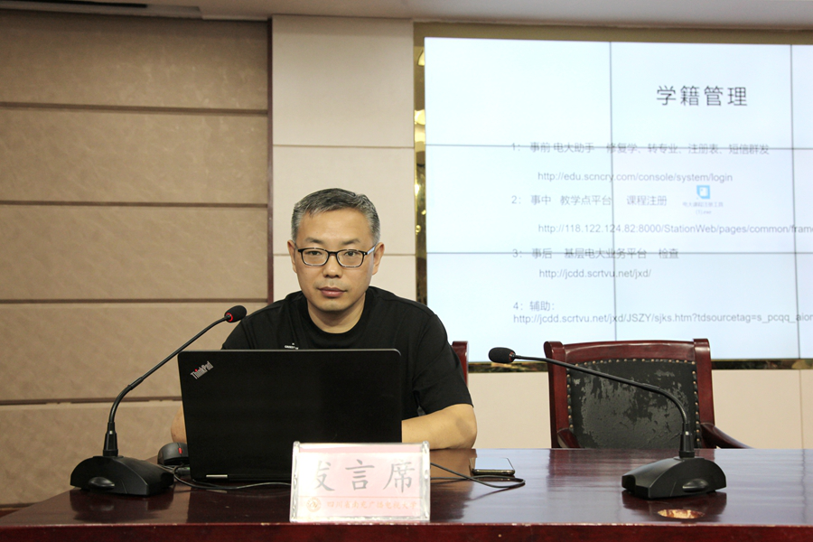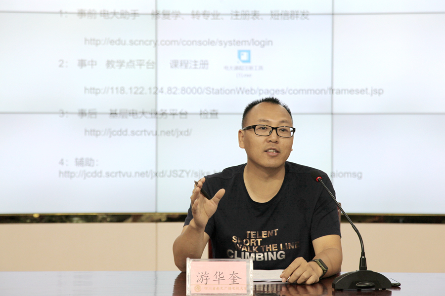 在随后进行的教务工作培训中,教务处刘超老师就南充电大教务管理系统进行了培训,特别是对系统运用过程中出现的问题进行了详细的讲解。游华奎处长针对基层电大业务平台相关功能做了详细的讲解和培训。
