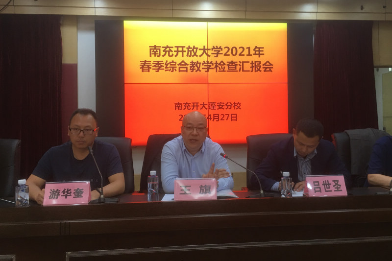 3月31日,四川省南充广播电视大学印发了《四川省南充广播电视大学关于开展2021年春季综合教学检查工作的通知》,此次教学检查通过提交自检报告与实地教学检查相结合的方式进行。截止4月15日,各分校全部提交了自检报告,通过各分校提交的自检报告,南充电大制定了《四川省南充广播电视大学关于开展2021年春季综合教学检查工作方案》,组建了分别以校党委书记、校长昝平和副校长王旗为组长的两个检查小组,对各分校进行实地检查。4月26-27日,两个检查小组对7个分校进行了实地教学检查。