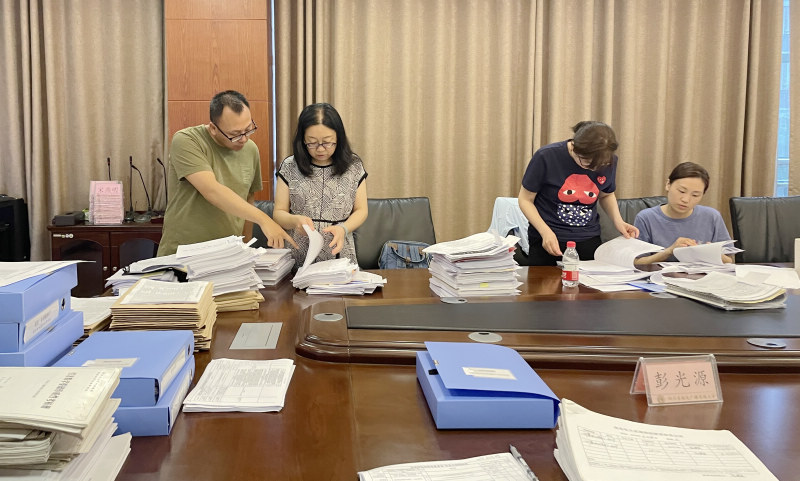 检查组在查阅迎评材料
