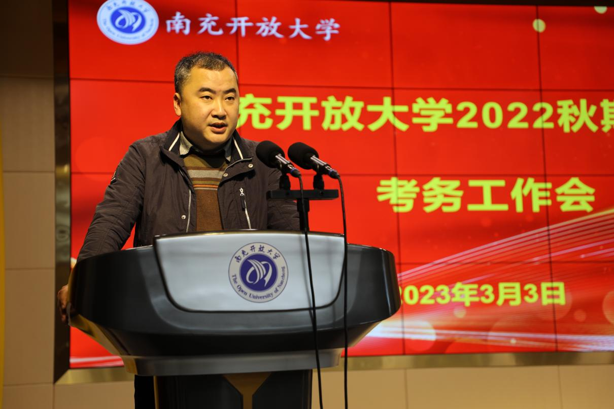 3月3日下午,南充开放大学召开2022秋期末纸质考试直属考点考务工作会。校党委书记、校长昝平,副校长蒲晓波、王旗、曲阳出席会议,会议由教务处处长游华奎主持。