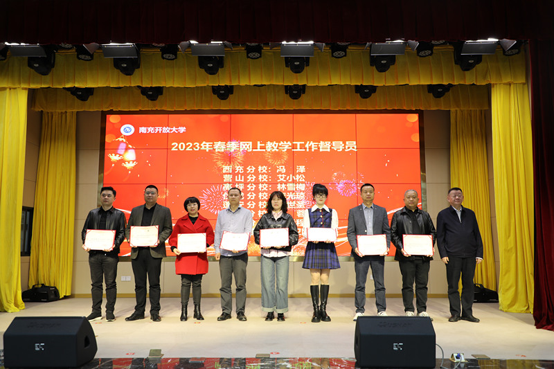会上观看了三个专题片:普通话水平测试站、职能技能等级认定中心和“实干成就梦想,奋斗铸就辉煌”。表扬了2022年秋季“网上教学优秀组织者”、“优秀课程辅导教师”,为冯泽、艾小松、林雪梅、李光琼、吕世圣、李蓉、李远程、肖卫刚等8位分校教学工作督导员颁发了聘书。教务处处长游华奎对2022年秋季的网上教学工作进行了总结,对2023年春季的网上教学工作做出了布署和安排。教学科研处副处长潘菁对参会人员进行了教学辅导专题业务培训。