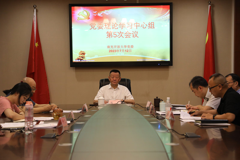 7月12日上午,南充开放大学党委在511会议室开展2023年第5次党委理论学习中心组专题学习会。校党委书记、校长昝平主持会议,党委委员、副校长蒲晓波、曲阳出席会议。副校长王旗、教务处处长游华奎、办公室副主任仲兰、教学科研处副处长潘菁列席会议。