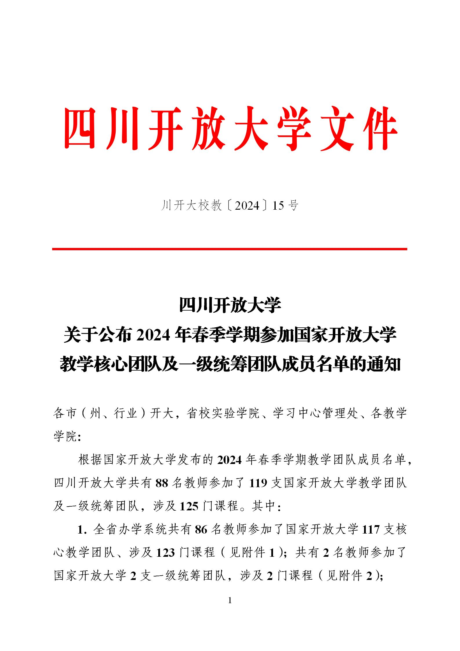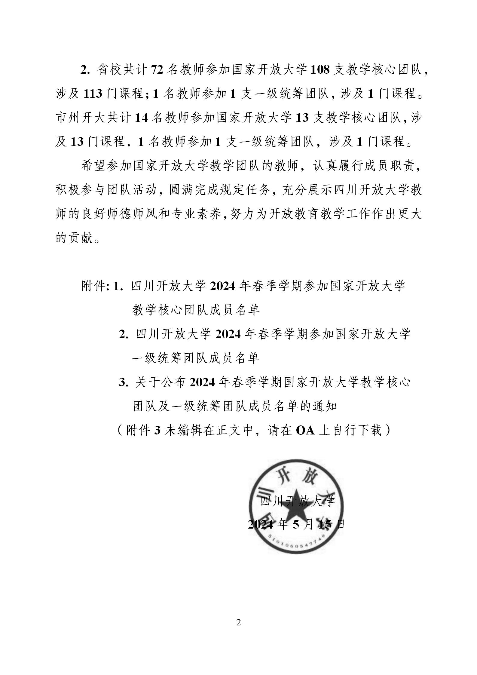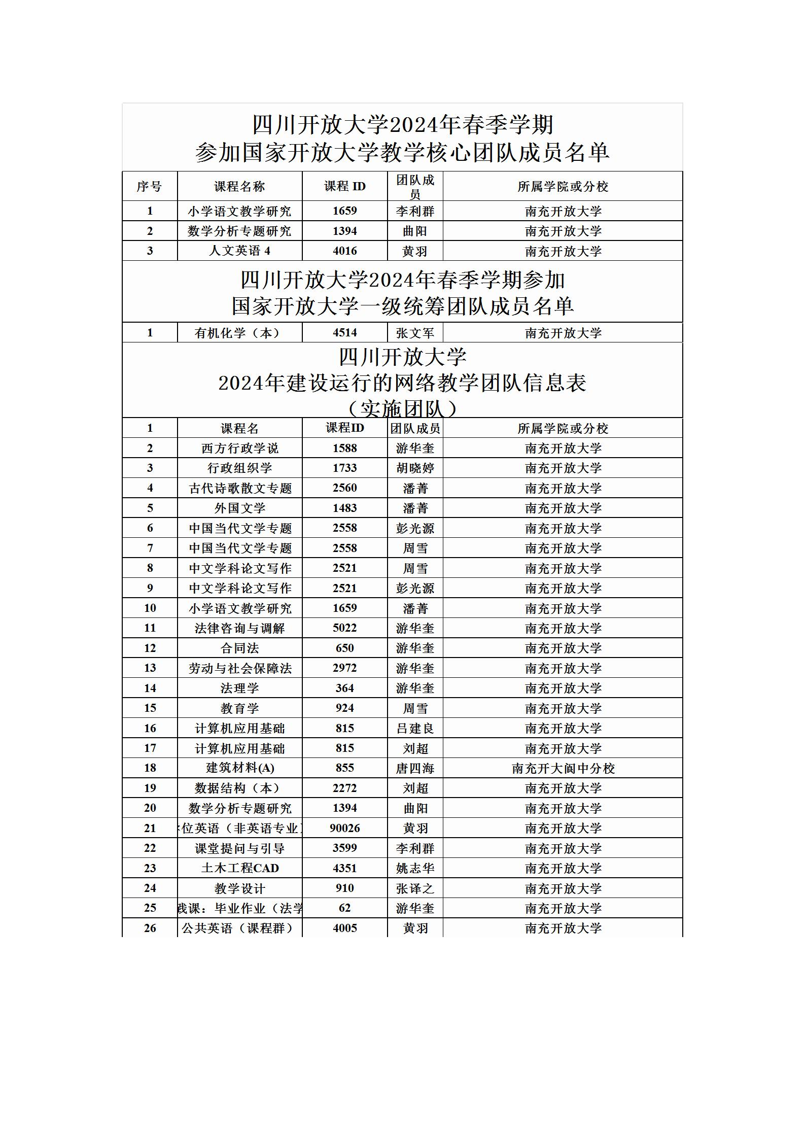 除这4位教师加入了国家开放大学教学团队之外,我校还有13位教师加入了四川开放大学网络教学团队。