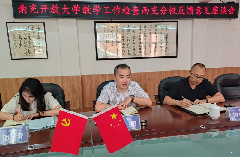 座谈会上,南充开放大学教务处处长游华奎、教学科研处副处长潘菁、教务处副处长胡晓婷就检查情况进行了通报,肯定了西充分校在毕业论文指导、实习等教学实践环节方面的工作,同时指出了在学位申请、实践教学、毕业论文评审等方面的不足之处。