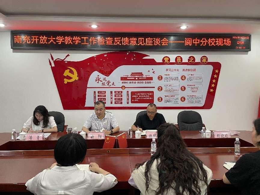 为保障教学工作平稳有序、规范有效,提升我市开放教育教学水平和质量,推动学校高质量发展,2024年6月21日,学校党委委员、副校长曲阳一行四人,对西充分校、南部分校、阆中分校进行了实地教学工作检查。
