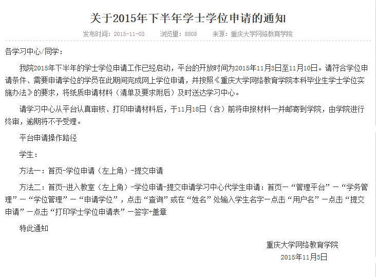 上一篇:关于2015年秋季学期11月份主题语音答疑安排的通知