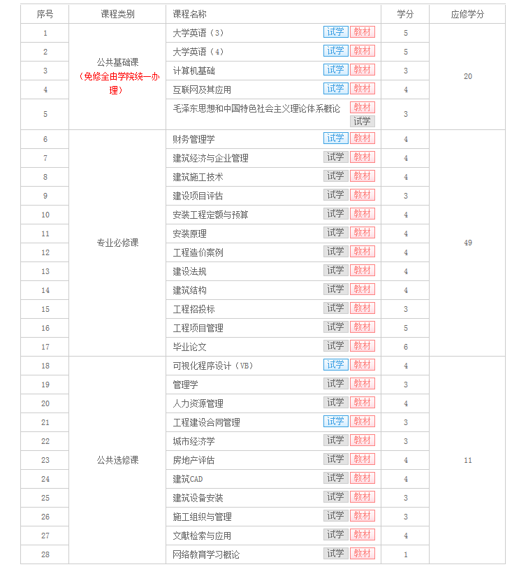下一篇:重大网络教育学院工程管理专业(本科二学历)教学计划