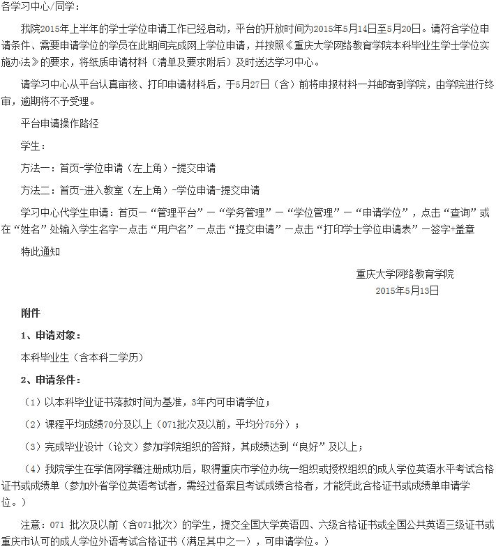 上一篇:关于201501批次毕业设计(论文)学院答辩申请的通知