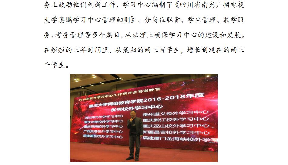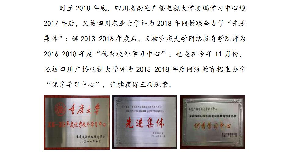 下一篇:南充电大奥鹏学习中心荣获“奥鹏现代远程教育公共服务体系2017年度奥鹏教育教材支持服务先进奖”