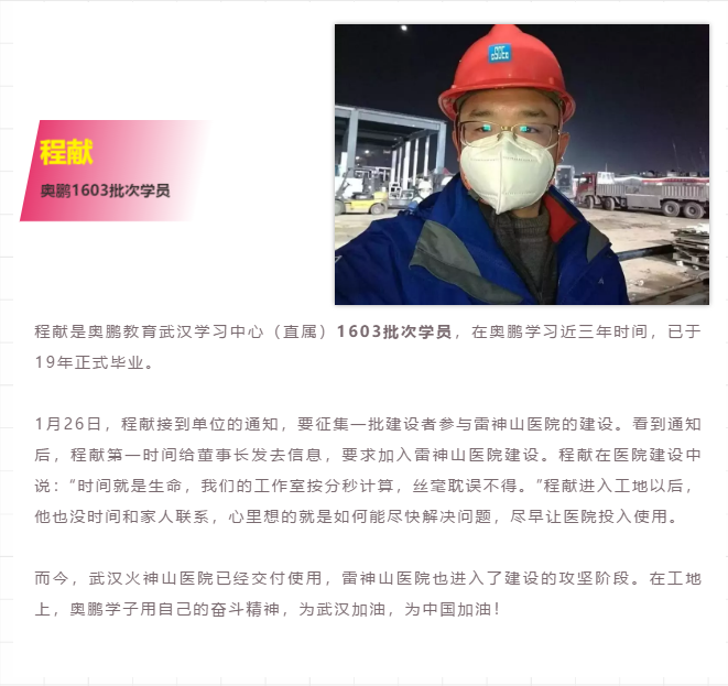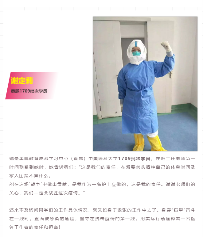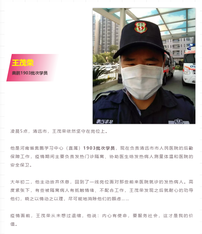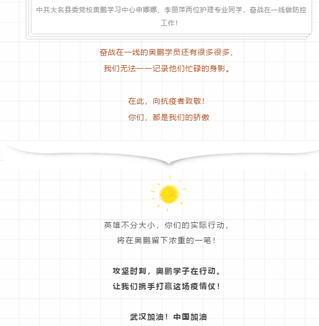 / 这场突如其来的疫情,悄无声息的扼杀了所有同学关于春节的美好愿望。隔离、封村、闭市...等等,从此,口罩成为了我们相依为命的伙伴。 但今天,我们不谈这些压抑的事情; 相反,一些来自奥鹏的学员,却带给我们无限的斗志和敬意: