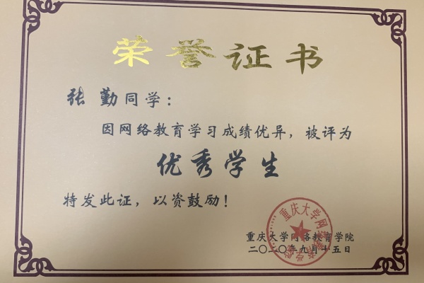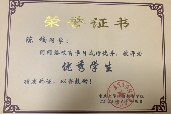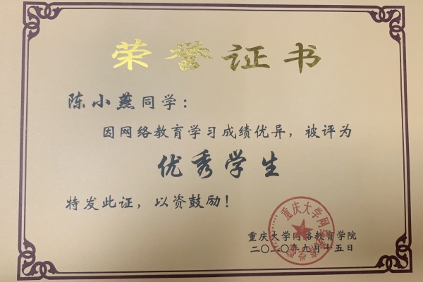 今日获悉,重庆大学网络教育学院2020年“优秀学生”获奖名单公布。重庆大学网络教育学院南充校外学习中心学生陈小燕、张勤、陈楠三位同学荣获“优秀学生”称号。