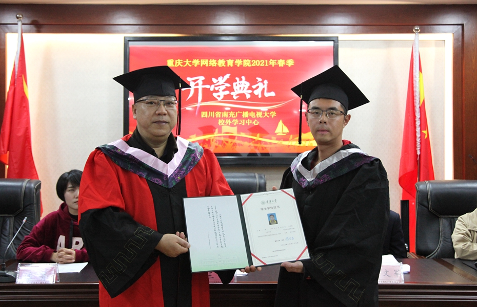 4月9日晚7点南充电大在小学术厅隆重举行重庆大学网络教育学院南充校外学习中心2021年春季新生开学典礼。南充电大奥鹏学习中心全体教师和部分新生代表参加了典礼,南充电大副校长王旗出席并作了讲话。