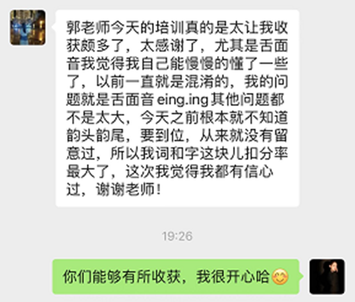 培训老师郭恩彤的专业讲授,让学员大有收获,纷纷向郭老师表达由衷的感谢,表示重拾了信心,将全力备考普通话水平测试! (图文:唐伦、何蝉露)