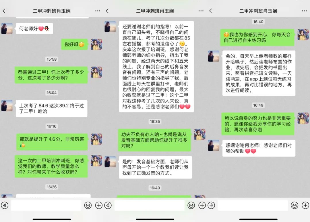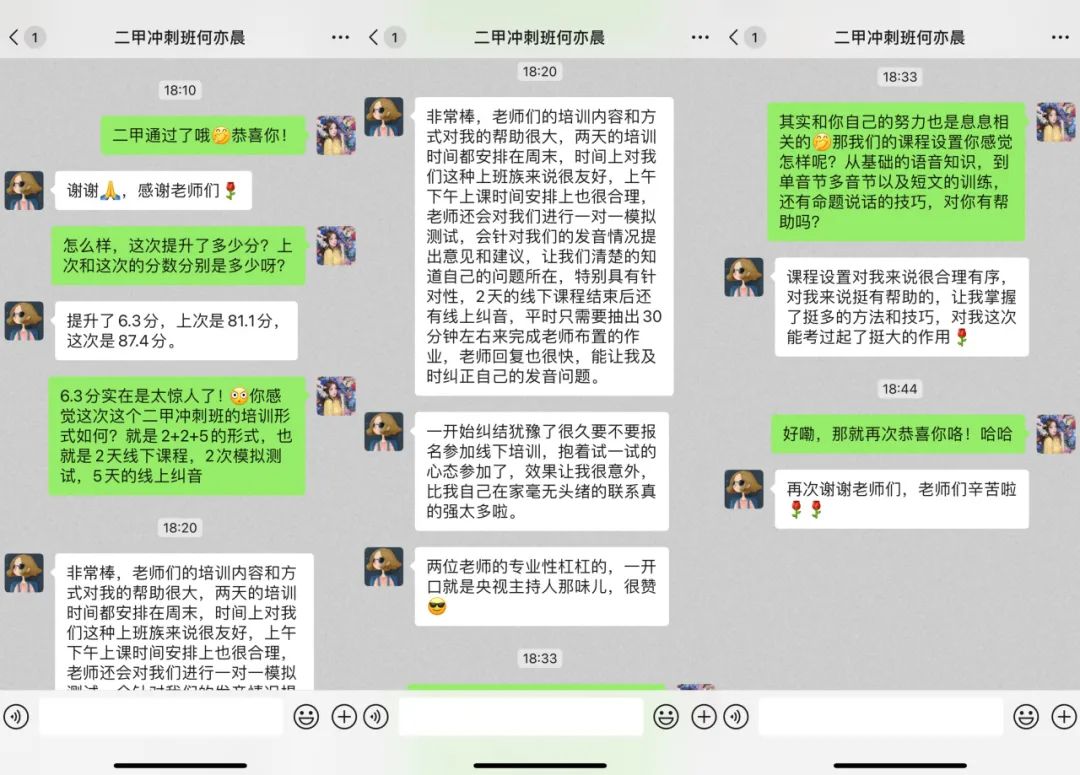 测试结束后,培训教师第一时间和学员分享“二甲”喜讯,部分学员也分享了自己的备考心得。