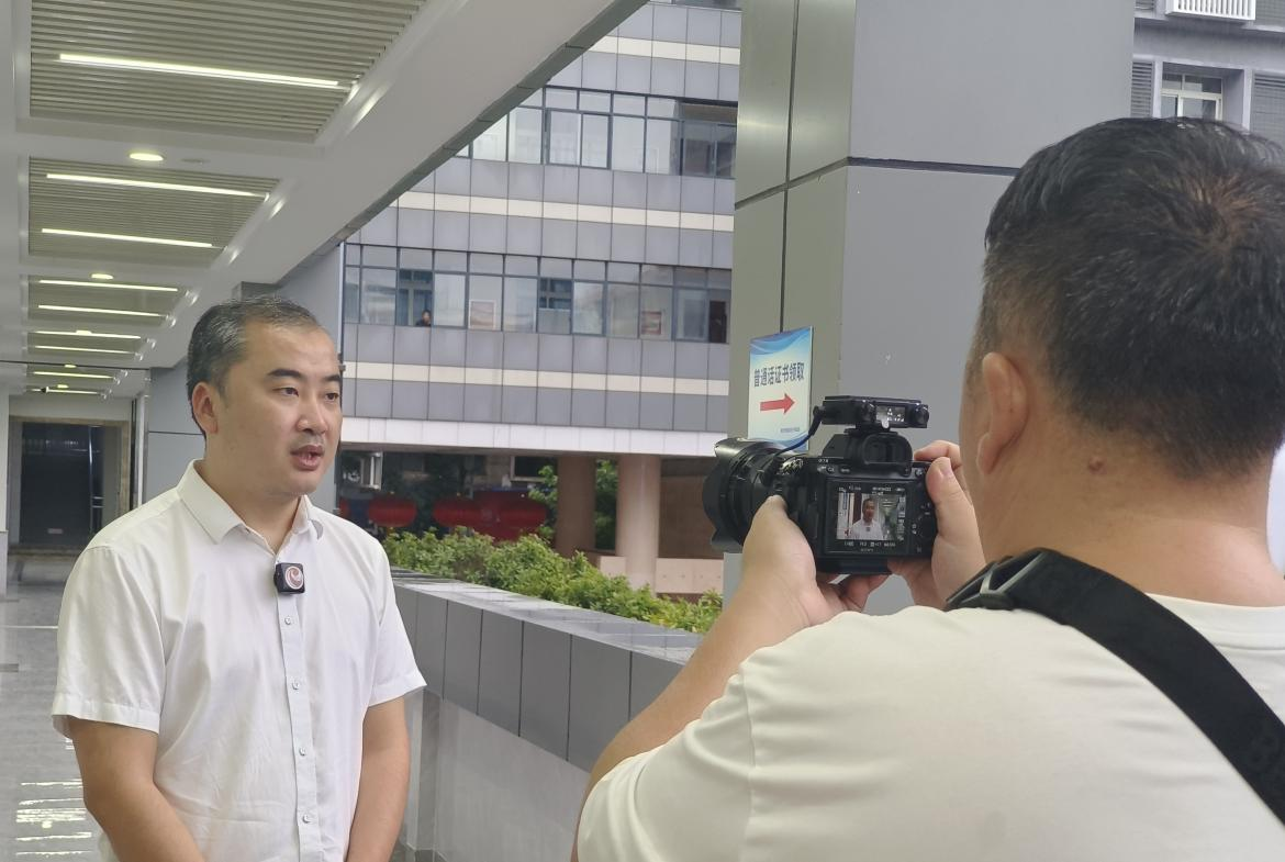 启动仪式后,曲阳副校长接受了南充市广播电视台采访,重点介绍了南充市普通话水平测试站情况。南充市普通话水平测试站按照“全省领先、市州一流”的标准建设,建有候考室、图像采集室、33个独立测试间以及考务指挥中心,已组织考生测试30场,测试人数30379,组织普通话培训22期,培训人数2150人,为助力社会“推普、学普、用普”贡献南充开放大学力量。