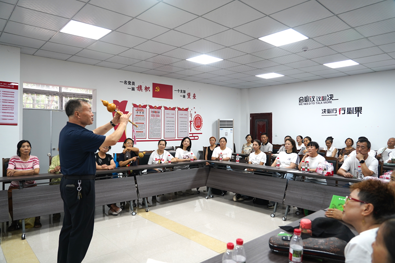 文艺表演结束后,现场教学环节热闹开启。声乐班中,老师耐心指导发音技巧,从基础音阶练习到歌曲情感表达,老人们听得专注、学得投入,不时传出欢快歌声与笑声;手鼓班内,老师亲自示范节奏要点,老人们认真模仿,激昂鼓点回荡教室,尽显学习热情。