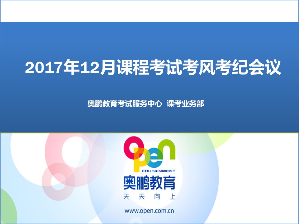 2017年11月30日下午3时许,由奥鹏教育考试中心、课程业务部主办的2017年12月课程考试考风考纪视频会议如期召开,南充电大奥鹏中心潘菁、宋燕明两位老师参加会议。