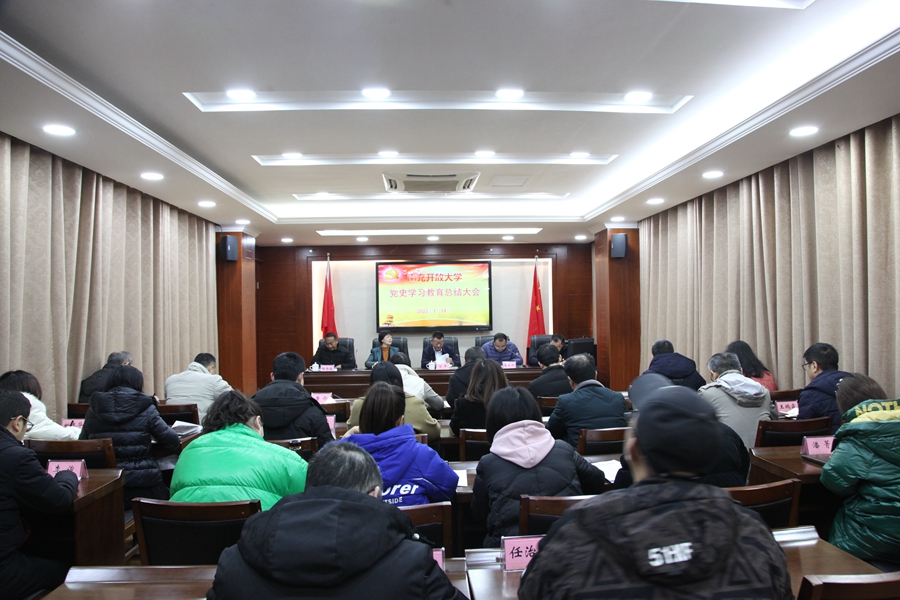 2022年1月14日上午南充开放大学召开党史学习教育总结大会,市委党史学习教育第13巡回指导组组长郑莉、副组长杨淮森到会指导。