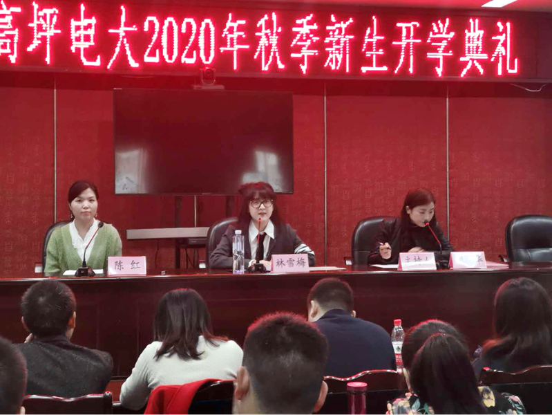 第一项议程:高坪电大站站长林雪梅致辞。林雪梅站长向全体新生介绍了学校的办学历史及办学情况,并对学员们提出要求,希望他们适应网络学习方式,注重学习过程中的自主性和可持续性,在提高自身专业水平和素质的同时,顺利完成学业。