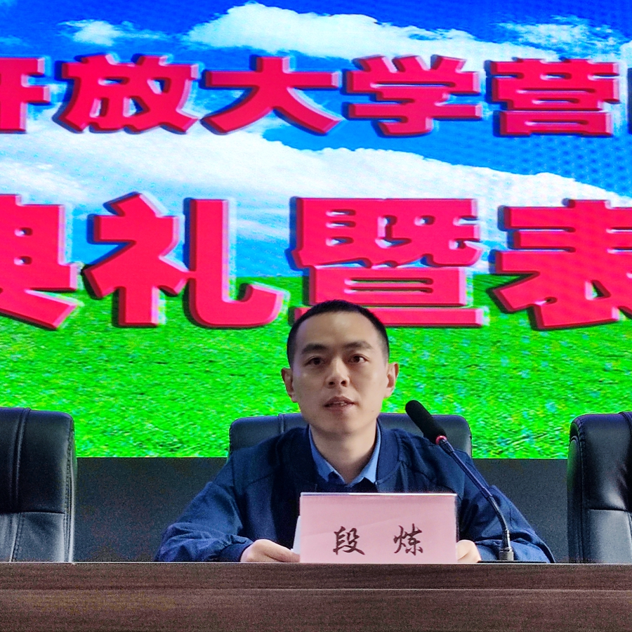 副校长段炼出席典礼并作讲话。段炼代表学校对新同学致以最诚挚、最热烈的欢迎,并从学习方法、学习态度、学习要求等几个方面,表达了对同学们的殷切希望,鼓励大家转变学习观念,科学合理安排学习时间,遵守电大的各项规章制度,积极适应开放教育学习模式,理论联系实际,将学到的知识运用到工作实践中。